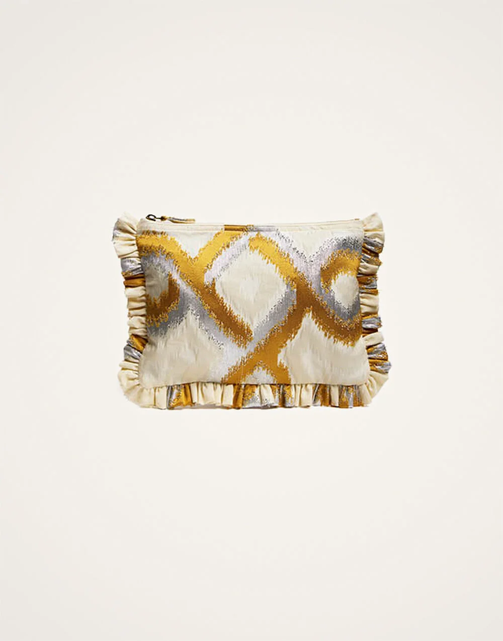 Arriving in upscale jacquard to put the finishing touch to your party look this season, our soft oversized zip pouch is a multi-use beauty that will easily house a cell phone, mini tablet and cardholder. It’s perfect to organize small items in a bigger bag but also works fabulously as a clutch. The side handle makes it super easy to carry around which – great news! – gives you free hands to hold your Bellini at a cocktail party. Details & Fit - Jacquard - Side handle - Zipper - Measurement: 32cm x 23cm - 100% Made in Italy - Composition: 62%Viscose 38%Cotton
