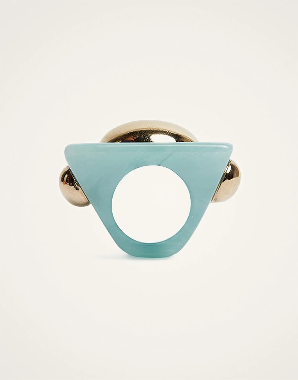 One thing we know for sure about the ancient Egyptians is that they loved their jewels. The Hathor Square Ring is a beautiful new statement stunner, oversized and graphic in solid colored resin with a gold orb floating in its center and two studs on either side. An elegant addition to any outfit, this pairs perfectly with any more delicate (or daring!) rings already in your jewelry box. Don't throw these around, amore - these delicate delights are precious. Details & Fit - Oversized square ring - Resin with gold studs - Size: 51 Europe, 12 Italian - Top square area measures 3,8 x 3,8cm, inner diameter measures 1,8cm - Composition: 90% Resin, 10% Zamak - Made in Italy