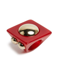 One thing we know for sure about the ancient Egyptians is that they loved their jewels. The Hathor Square Ring is a beautiful new statement stunner, oversized and graphic in solid colored resin with a gold orb floating in its center and two studs on either side. An elegant addition to any outfit, this pairs perfectly with any more delicate (or daring!) rings already in your jewelry box. Don't throw these around, amore - these delicate delights are precious. Details & Fit - Oversized square ring - Resin with gold studs - Size: 51 Europe, 12 Italian - Top square area measures 3,8 x 3,8cm, inner diameter measures 1,8cm - Composition: 90% Resin, 10% Zamak - Made in Italy