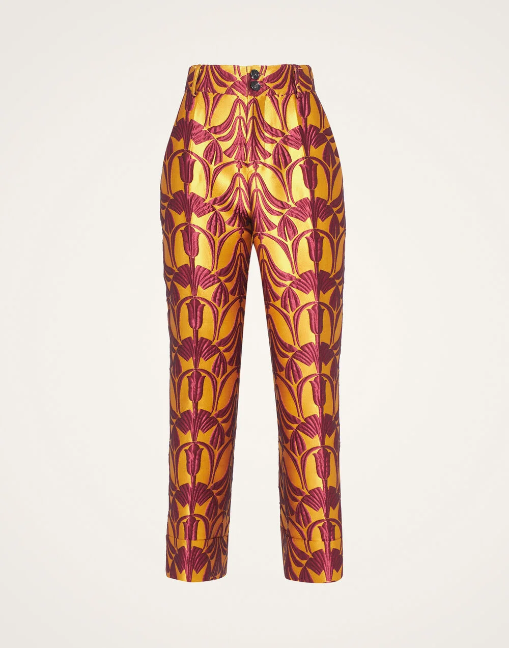 For strutting, high-kicking and looking badass. The Hendrix Pants would make Jimi proud. Made in our show-stopping Gerber jacquard (which has a hint more structure) with our fabulous La Scala top to match, they're a proper four-pocket, button-fly trouser. High-waisted and fitted at the hips and butt (they look extra great when you're shaking it, btw) they flare slightly and hit just above the ankle. Details & Fit - Jacquard - Fitted around the hips and butt - High-waisted - Button fly and four pockets - Cropped length with a slight flare - 100% Made in Italy - The model is 177 cm tall and wears a size S - Garment length: 98cm