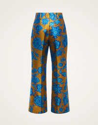 For strutting, high-kicking and looking badass, the Hendrix Pants would make Jimi proud. A proper four-pocket, button-fly trouser, this version is crafted in Hottie jacquard, our fabulous new floral that arrives with the La Scala Top to match. High-waisted and fitted at the hips and butt (they look extra great when you're shaking it, btw) they flare slightly and hit just above the ankle. Details & Fit - Jacquard - Fitted around the hips and butt - High-waisted - Button fly and four pockets - Cropped length with a slight flare - 100% Made in Italy - Composition: 86% Polyester 6% Metal 5% Silk 3% Polyamide - The model is 180 cm tall and wears a size S - Garment length: 98cm