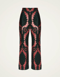 For strutting, high-kicking and looking badass, the Hendrix Pants would make Jimi proud. A proper four-pocket, button-fly trouser, this version arrives in our Oltrarno jacquard - don’t miss the matching La Scala Top for a molto elegante full look. High-waisted and fitted at the hips and butt (they look extra great when you're shaking it, btw) they flare slightly and hit just above the ankle. Details & Fit - Jacquard - Fitted around the hips and butt - High-waisted - Button fly and four pockets - Cropped length with a slight flare - 100% Made in Italy - Composition: 41%Polyester 22%Wool 22%Acrylic 8%Other Fibers 7%Silk