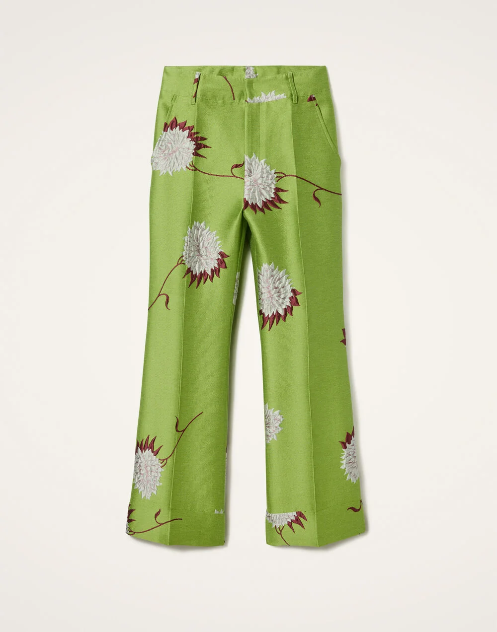 For strutting, high-kicking and looking badass. The Hendrix Pants would make Jimi proud. Made in our juicy jacquard, they're a proper four-pocket, button-fly trouser. High-waisted and fitted at the hips and butt (they look extra great when you're shaking it, btw) they flare slightly and hit just above the ankle. Details & Fit - Jacquard - Fitted around the hips and butt - High-waisted - Button fly and four pockets - Cropped length with a slight flare - 100% Made in Italy - Composition: 83% Polyester 9% Cotton 5% Silk 3% Polyamide - The model is 177 cm / 5′ 9.7″ tall and wears a size S