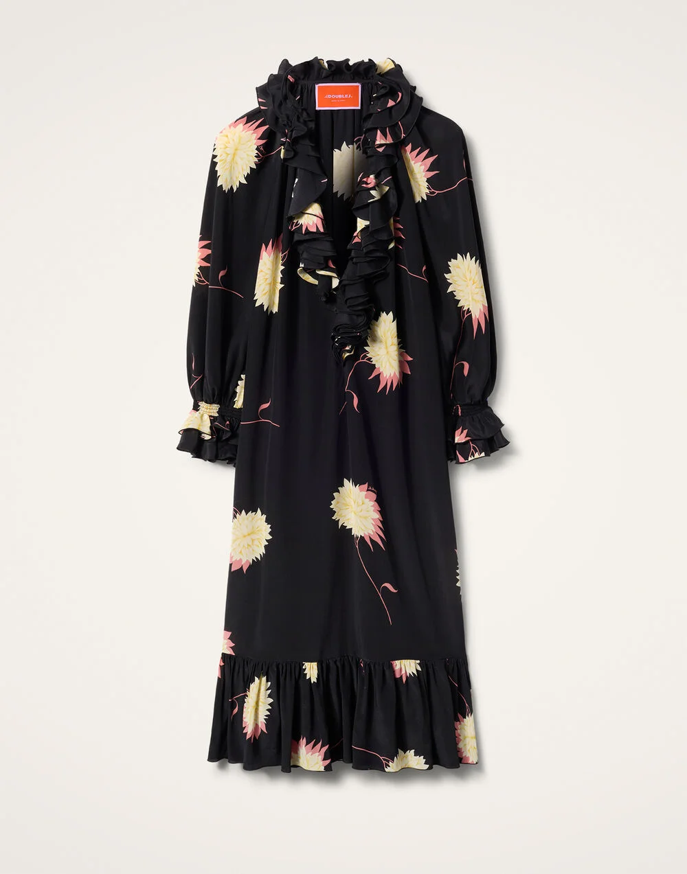 With her diaphanous sleeves, voluminous shape and dangerously deep v, the Hey Jude! dress was made for muses. We’ve added ruching details all along the collar and cuff for a little added drama and crafted her in crave worthy Italian crepe de chine. It’s giving full 60’s Glastonbury goddess (before the mud bath and beer). Details & Fit - Crepe de chine - Midi dress - Ruching along cuff and collar - Elasticated cuff - Pockets - 100% Made in Italy - Composition: 100% silk - The model is 175 cm / 5′ 9″ tall and wears a size S