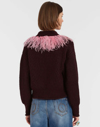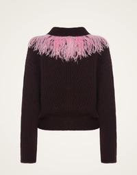 It’s official: cardigans just got interesting. Like your most maximalist friend, this High Kick beauty has a totally infectious personality, lined with a plume of contrast feathers that give all outfits and occasions a double punch of perky positivity. Crafted in a soft alpaca-merino wool blend, it does everything you need it to - keep you warm, drape fabulously over your favorite dress - while lifting your mood at the same time. How’s that for winning? A smidge on the cropped side with buttons down the front, wear it over the exquisite Eros Dress for your fanciest black tie invitation, or simply with your jeans at the weekend. Obviously we adore it both ways. Details & Fit - Alpaca blend - Feathers line V neck - Long sleeve - Buttons down front - Cropped silhouette - 100% Made in Italy - Composition: 66% Baby Alpaca 22% Polyamide 10% Fine Merino Wool 2% Ostrich Feathers - The model is 177 cm tall and wears a size S - Garment length: 50cm