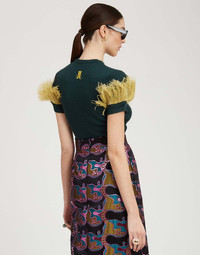 The High Kick Tee is the approval we all needed to wear feathers on the everyday. Bellissima with jeans, palazzos, skirts, sweatpants or whatever else you are loving right now, our ribbed T-shirt finished with feathers across the chest is officially the easiest way to elevate your wardrobe and send your mood soaring. Arrives in a luxurious cashmere-blend in an off-beat palette of hues for the full LDJ sensory experience. Details & Fit - Cashmere silk knit - Short sleeves - Ostrich feather trim across chest and sleeves - Ribbed - Crew neck - 100% Made in Italy - Composition: 68% Cashmere 30% Silk 2% Ostrich Feathers - The model is 179 cm tall and wears a size S - Garment length: 55cm