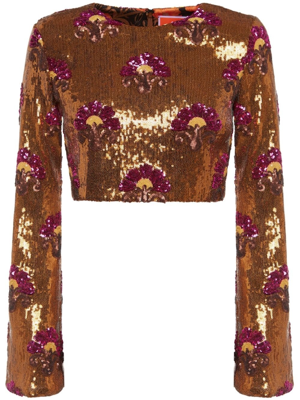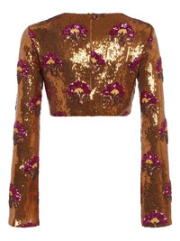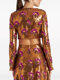 Holly sequined cropped top Highlights - Burnt orange - Stretch-design - Sequin design - Floral motif - Round neck - Concealed rear zip fastening - Long sleeves - Cropped - Straight hem Composition Polyester 99%, Elastane 1%