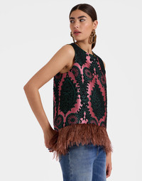 As far as interesting silhouettes go; this top may win the gold star. The asymmetrical hem, trapeze silhouette and contrast macrame tassels creates an alluring form. In sumptuous jacquard which has a textured surface feel, it’s undoubtedly upscale with it's feathered hem, but looks equally as great with some jeans and flats. Details & Fit - Jacquard - Unlined - Sleeveless top - Tassels along bottom hem - Composition: 42% Polyester 37% Cotton 9% Metal 7% Silk 5% Polyamide - The model is 179 cm / 5′ 10.5″ tall and wears a size S