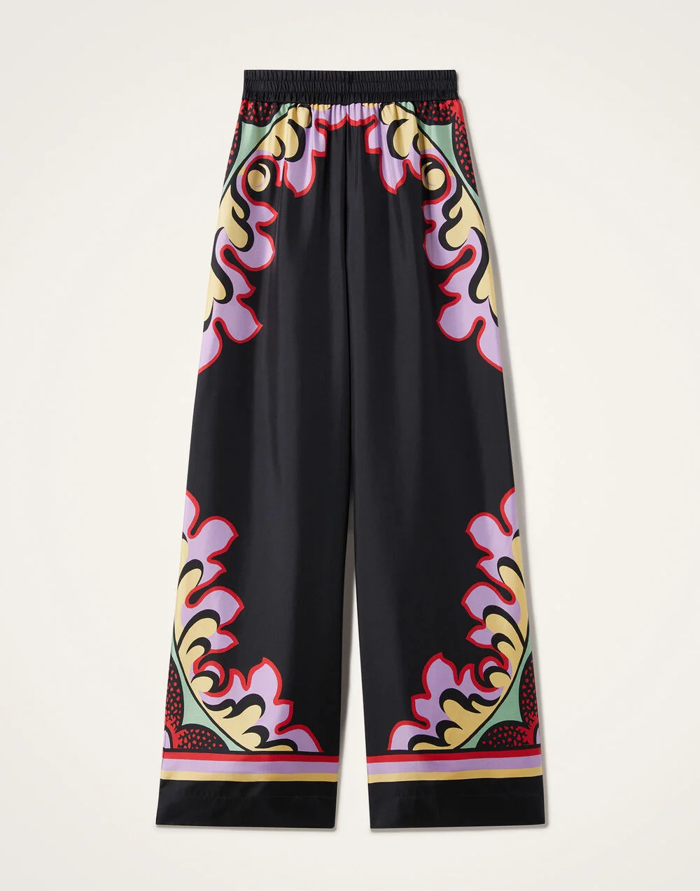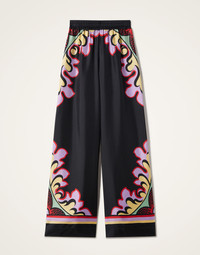 We cannot take credit for inventing the Palazzo Pant silhouette, but we will take credit for making them cool again. These trousers sit on the waist and fall flared, with a wide, breezy fit through the legs – like a skirt, but with the comfort of pants. Crafted in our woven silk twill from the shoes of Lake Como, this hand-placed Palazzo print is totally bellissima for living your best la dolce vita summer. Details & Fit - Silk twill - Hand-printed - Elastic waist - Concealed side pockets - Roomy fit - Garment length: 110cm - 100% Made in Italy - Composition: 100% Silk - The model is 178 cm / 5′ 10″ tall and wears a size S