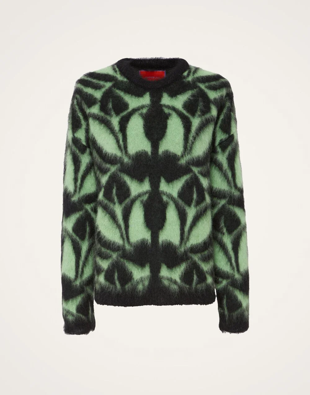 For when you’re perusing the vintage thrift stores, but your fellow bargain hunters can’t stop eyeing your sweater. The Camden Jumper is effortlessly cool, in eye-popping pink and green color ways with a nero hand-placed print throughout. Crafted from a luxurious brushed mohair blend, it’s surprisingly light but crave-ably cozy. Pair it with our matching Camden Skirt for a stop-traffic statement look, or our Better Than Your Boyfriend’s Jeans for an uber-cool London look with a little Italian energy thrown in. Details & Fit - Brushed mohair blend - Slouchy oversized fit - Hits at mid hip - Two-tone hand-placed print all over - Ribbed collar - 100% Made in Italy - Composition: 60%Mohair Super Kid 36%Polyammide 4%Wool - The model is 181 cm tall and wears a size S - Garment length: 64cm