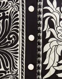 High on impact and low on effort, Iris is the chicest answer to cold shoulders this season. Named after our nonagenarian sister-in-maximalism, Iris Apfel, this androgynous silhouette riffs off a masculine shirt silhouette, with a slightly oversized fit and pockets in the sides. Arriving in this stunning hand-placed print, wear it a la Apfel with the matching printed Santa Monica Skirt and the biggest sunglasses you can find. Details & Fit - Twill - Hand-placed print - Oversized silhouette - Cuffs - Button snaps down the front - Side pockets - 100% Made in Italy - Composition: 100% Polyester - The model is 179 cm tall and wears a size S - Garment length: 70cm