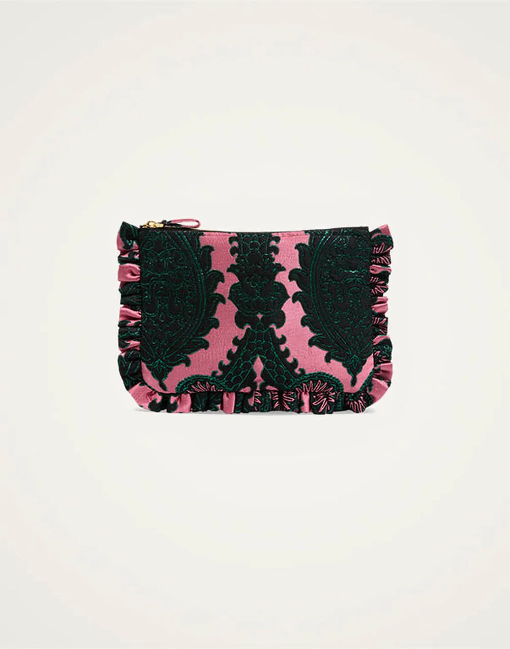 Party season perfection in this glowing jacquard, our soft oversized zip pouch is a multi-use beauty that not only elevates the status of your dinner-to-dancing outfit, but will easily house a cell phone, mini tablet and cardholder. The side handle makes it super easy to carry around which – great news! – gives you free hands to hold your Bellini at a cocktail party. Details & Fit - Jacquard - Side handle - Zipper - Measurement: 32cm x 23cm - 100% Made in Italy - Composition: 41% Polyester 22% wool 22% acrylic 8%other fibres 7% silk