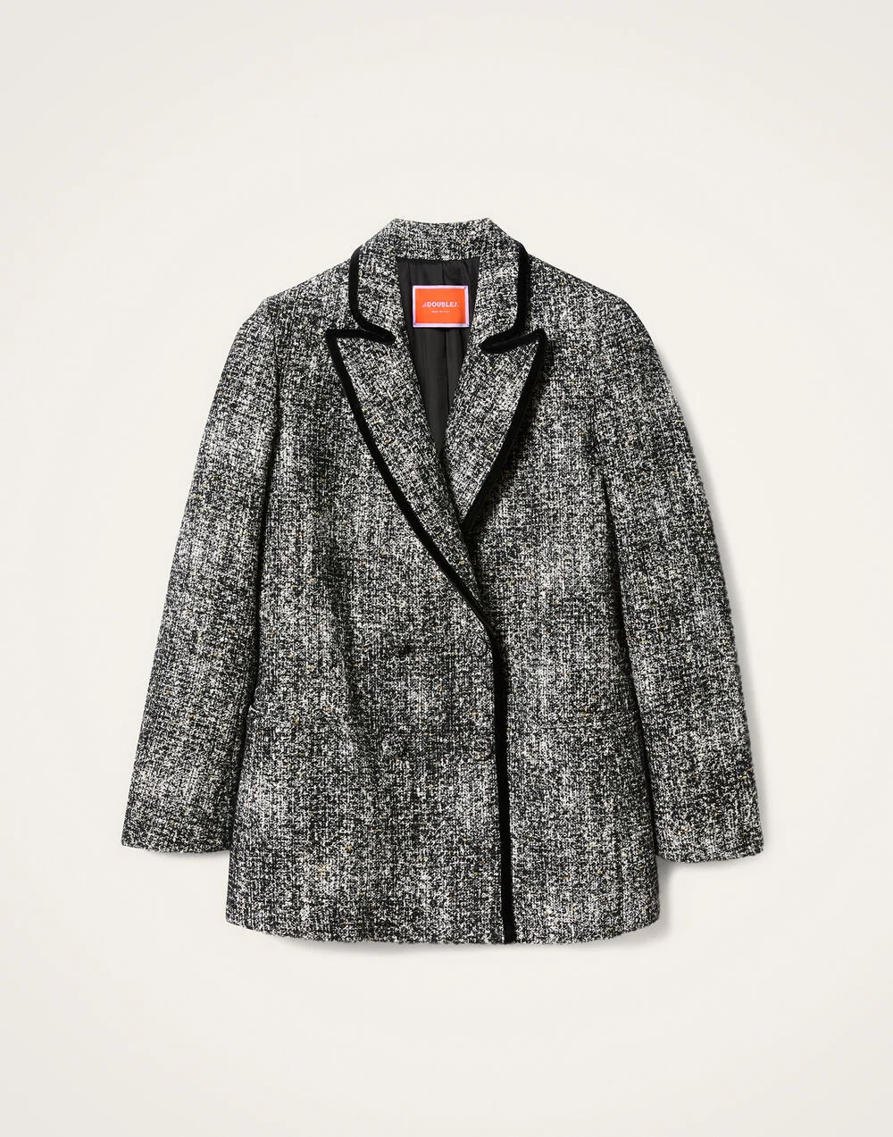 The queen of Studio54 cool, Bianca Jagger was our muse for this sleek new number. Tailored to perfection, this double-breasted beauty is a little bit masculine with a strong shoulder, but still feminine in a long flattering fit. Arriving in solid shimmery lurex, we're taking this straight from the office to the premiere after-party. Details & Fit - Lurex wool - Double breasted blazer - Pockets - Hits below bum - 100% Made in Italy - Composition: 31% Viscose 26% Cotton 19% Acrylic 9% Polyamide 4% Other Fibers 4% Polyester 4% Mohair 3%Virgin Wool - The model is 180 cm / 5′ 11″ tall and wears a size S