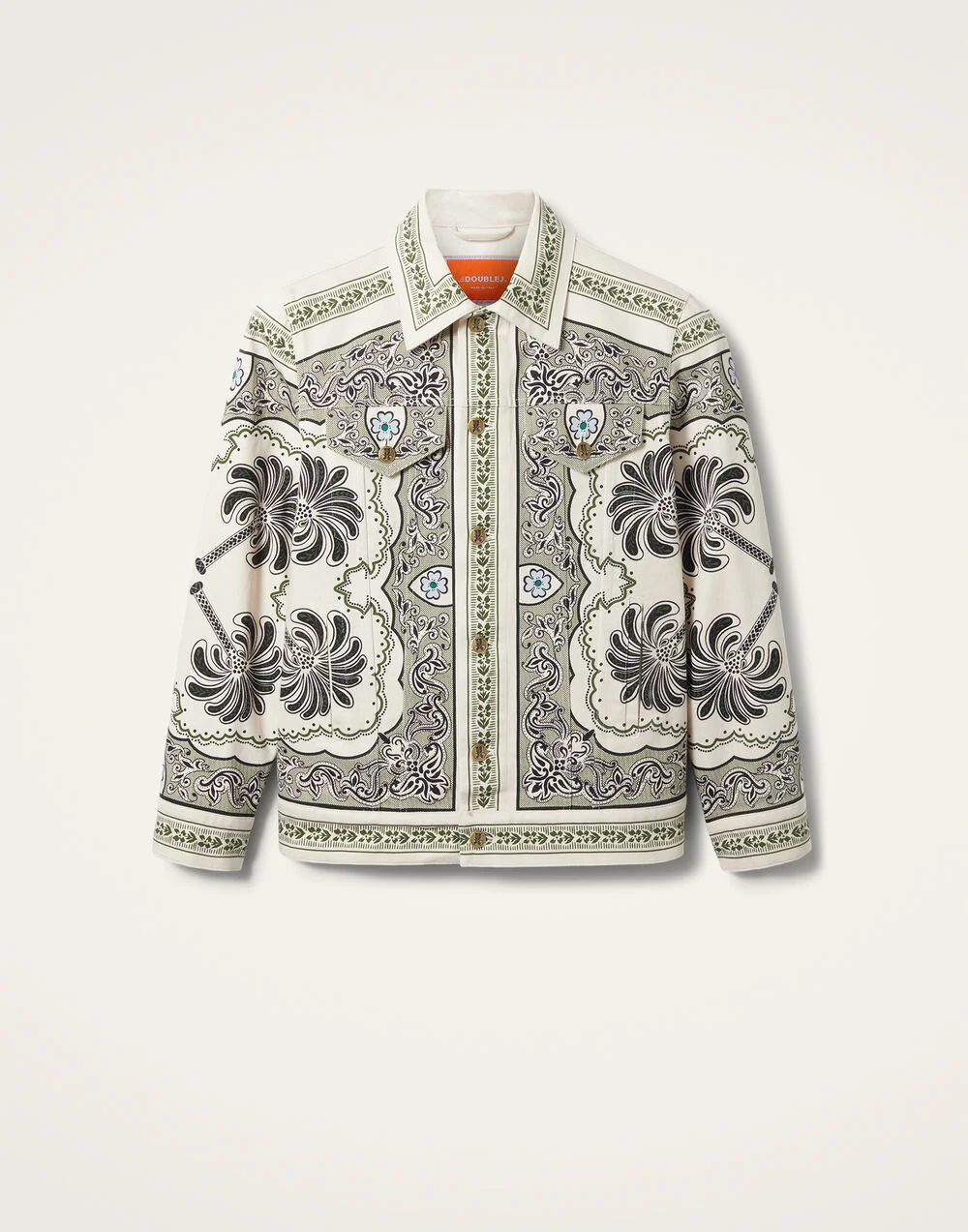 You know we mean business when we put J.J.’s name on a piece. This jacket has so much joy sewn into the seams, we’re wearing it all year long, over jeans, over dresses, paired with our dynamite new denim Mini. Oversized enough to have that covetable “lived-and-loved-in” look, this is an elevated take on the every day, with hand placed prints in sophisticated color ways, and custom buttons embossed with our new Yang emblem. Apologize to your other jean jackets for us - I'm afraid they've been replaced. Details & Fit - Slightly oversized jean jacket - Hand placed printed denim - Embossed buttons - Pockets - Composition: 99% Cotton 1% elastane - The model is 180 cm / 5′ 11″ tall and wears a size S