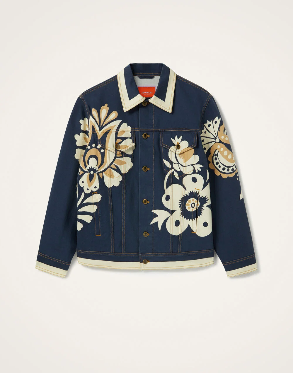 You know we mean business when we put J.J.’s name on a piece. This jacket has so much joy sewn into the seams, we’re wearing it all year long, over jeans, over dresses - capiche. Oversized enough to have that covetable “lived-and-loved-in” look, this is an elevated take on the every day, expertly hand-printed with our kick-in-the-happy-pants Selva motif on cool white denim. Apologize to your other jean jackets for us - I'm afraid they've been replaced. Details & Fit - Slightly oversized jean jacket - Hand placed printed denim - Embossed buttons - Pockets - Garment length: 62cm - Composition: 99% Cotton 1% Elastane - The model is 178 cm / 5′ 10″ tall and wears a size S