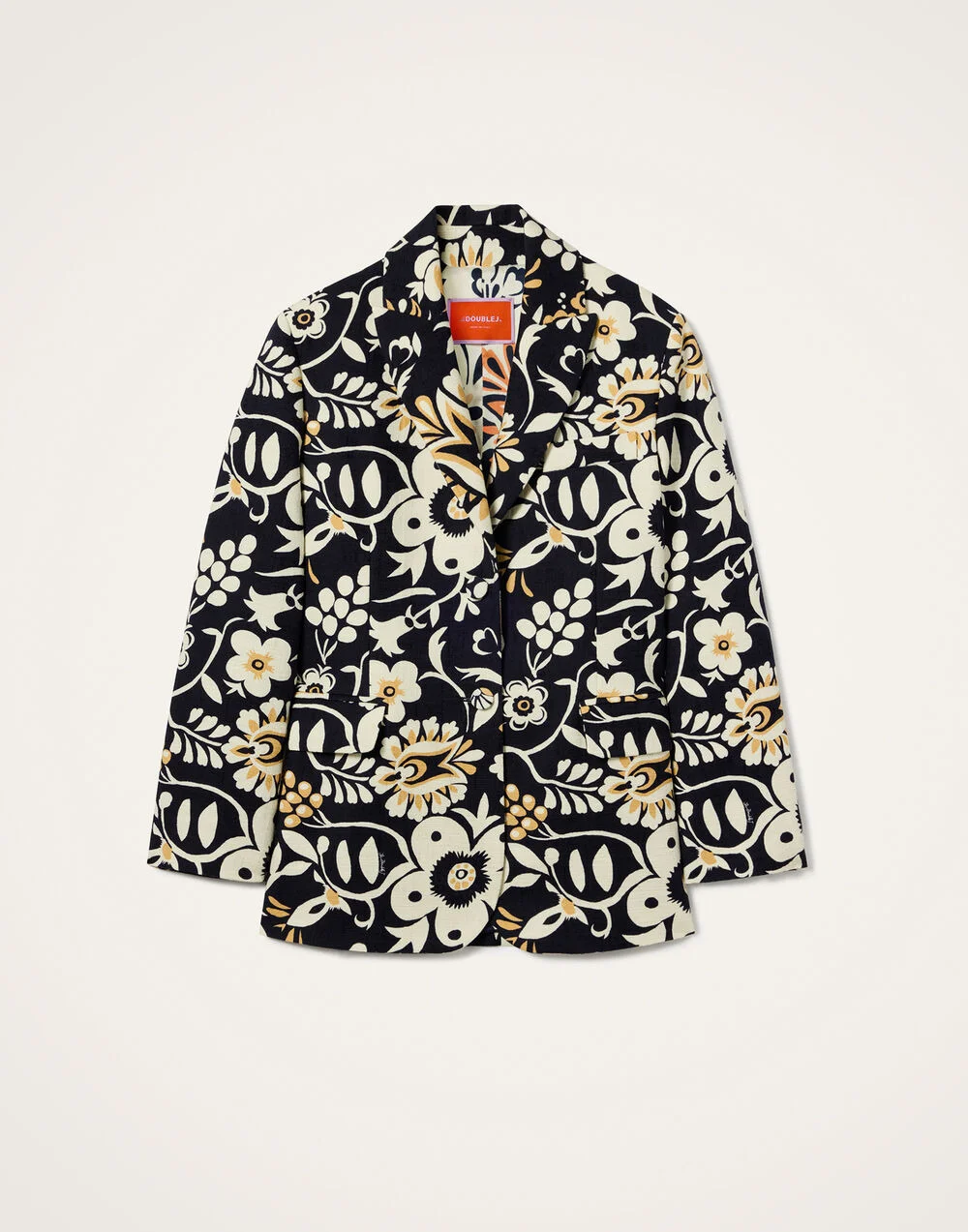 Inspired by the queen of cool, Grace Jones, this 1 1/2 breasted blazer hits on every note. Oversized but with a flow fit, she’s the perfect blend of masculine and majestic, as if you borrowed your date’s dinner jacket at the gala and draped it over your shoulders. Patch pockets on the front and faux buttons down the cuff add detail to an already dramatic look. Perfect for throwing over a summer wedding look in this linen-feel rustic cotton. Details & Fit - Cotton - 1 1/2 breasted jacket - Oversized drapey fit - Patch pockets in front - Faux buttons on cuff - 100% Made in Italy - Composition: 98% Cotton 2% Elastane - The model is 178 cm / 5′ 10″ tall and wears a size S