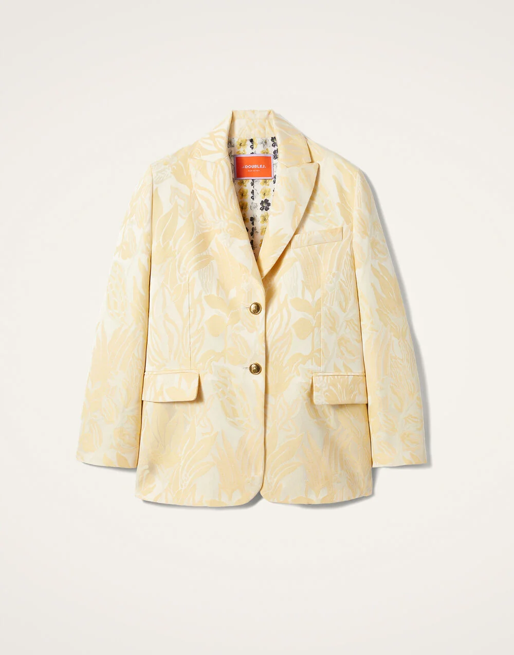 Inspired by the queen of cool, Grace Jones, this 1 1/2 breasted blazer hits on every note. Slightly oversized, she’s the perfect blend of masculine and majestic, as if you borrowed your date’s dinner jacket at the gala and draped it over your shoulders. Patch pockets on the front and buttons down the cuff with a powerful scarab symbol add detail to an already dramatic look. We love her over dresses and jeans alike. Details & Fit - 1 1/2 breasted jacket - Oversized drapey fit - Patch pockets in front - Scarab buttons on cuff - 100% made in Italy - Composition: 64% Cotton 36% Recycled Polyester - The model is 180 cm / 5′ 11″ tall and wears a size S