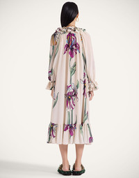 With her diaphanous sleeves, voluminous shape and dangerously deep v, the Hey Jude! dress was made for muses. We’ve added ruching details all along the collar and cuff for a little added drama and crafted her in crave worthy Italian crepe de chine. It’s giving full 60’s Glastonbury goddess (before the mud bath and beer). Details & Fit - Crepe de chine - Midi dress - Ruching along cuff and collar - Elasticated cuff - Pockets - 100% Made in Italy - Composition: 100% silk - The model is 177 cm / 5′ 9.7″ tall and wears a size S