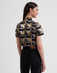 Bring back the going out-out top! Crafted in our shimmery sumptuous jacquard, the Juliet Crop Top is a bonafide night owl dressing up the ordinary in your wardrobe with effortless pzazz. High collared with short sleeves and a waist-skimming crop, it’s super structured with a zip in the back. We love it with the Oscar Skirt for flirty nights in the city but feel free to pop it in your work bag to rocket your high-waisted black pants from office to out-out. Details & Fit - Jacquard - Crop top silhouette - Zip in back - High collared - Short sleeve - 100% Made in Italy - Composition: 84% Cotton 7% Silk 5% Polyamide 4% Metal - Model is 178 cm / 5'8" and wears size S | Chest: 83 cm / 32 in | Waist: 61 cm / 24 in | Hips: 88 cm / 35 in