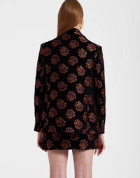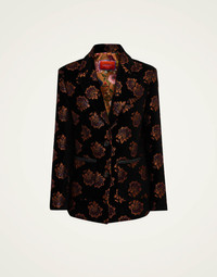 With her straight, tailored and effortlessly elegant fit, the Kelly Jacket is a “That Girl” essential. Patch pockets on the front give it an elevated vintage feel while its Rosette printed jacquard is giving modern maximalism at its finest. The ideal transitional piece, you can wear her as a not-so-basic blazer in the fall, and as a light opera jacket when the temperature drops in Winter. Whatever way you wear it, we love her. Details & Fit - Jacquard blazer - Faux buttons on cuff - Patch pockets on front - Hits just below hip - 100% made in Italy - Composition: 32%Viscose 22%Recycled Polyester 22%Cotton 21%Polyester 3%Metal