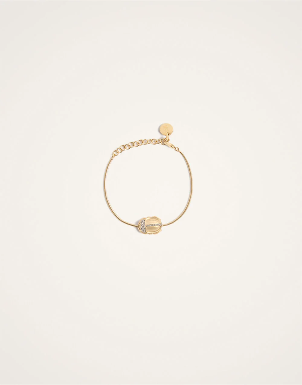 In Ancient Egyptian tradition, Khepri was a sun deity and the god of rebirth, transformation, and resurrection. So while this dainty and refined 24K gold plated Khepri bracelet might appear delicate, it's actually a powerful energy-elevating accessory. Details & Fit - 24k Gold plated Brass with rhinestone - 95% Brass 5% Crystal - Made in Italy - Bracelet measures 23cm