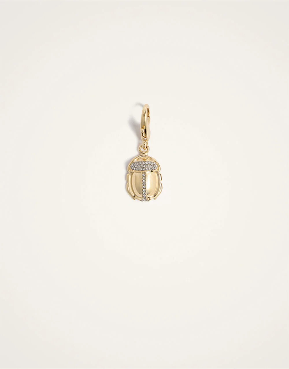 We truly try to embody our raise your vibration mission in everything we do - even the tiniest items in our collection pack a potent protective punch. This is one of numerous Scarab charms in our collection as the scarab is a powerful Ancient Egyptian symbol of transformation and rebirth (we're crazy about this spirit animal over here, can you tell?) This 24K gold plate iteration is mini but mighty and arrives embellished with a rhinestone for a little extra pop of pizazz - add it to items in your existing jewelry collection or amplify that regenerating energy by pairing it with the Lady Scarab charm already in our collection! Details & Fit - 24k Gold plated brass and rhinestone - 90% Brass 10% Crystal - Made in Italy