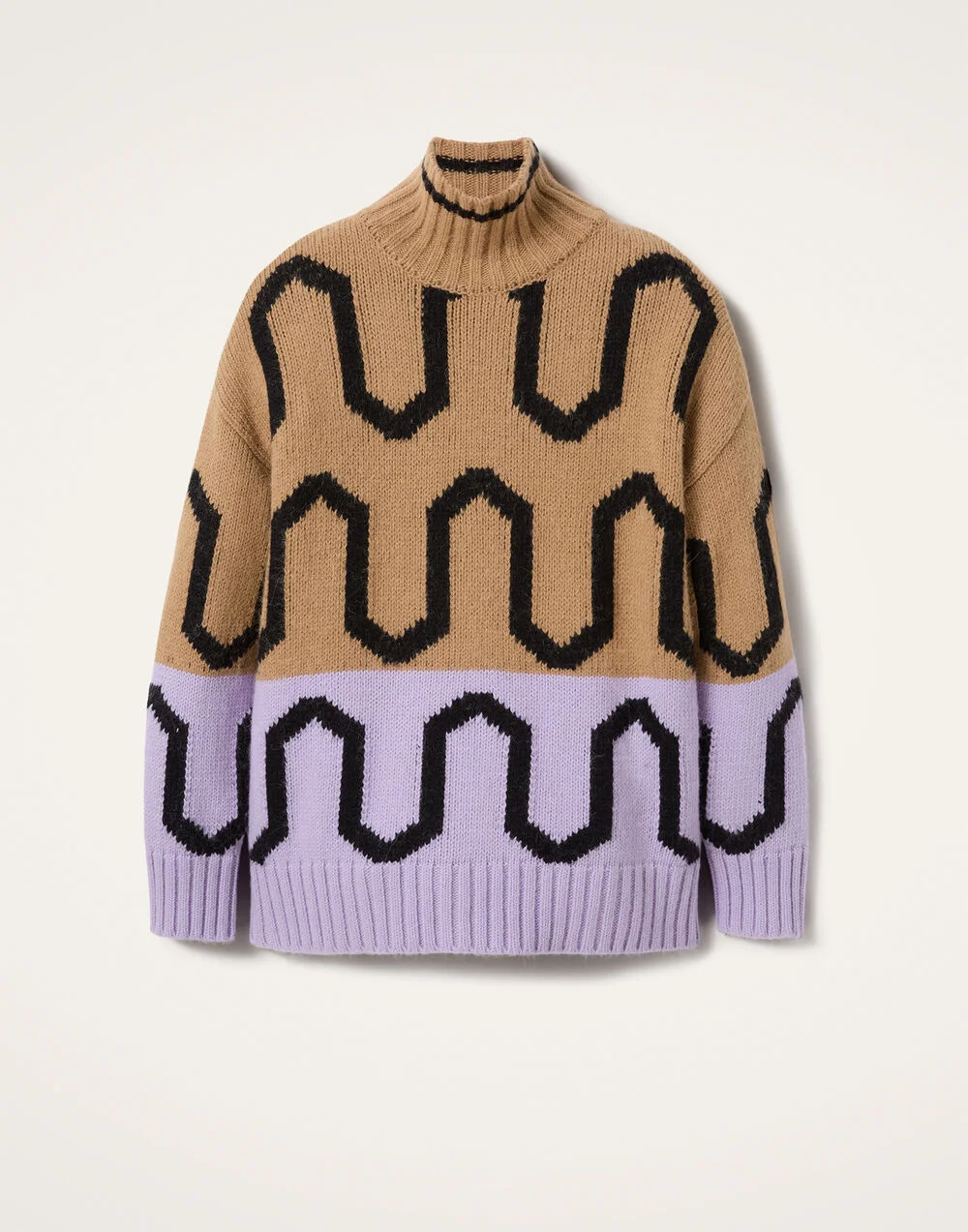 No ugly sweater parties here! This turtleneck arrives in the MOST sumptuous alpaca wool blend, in a two tone wave print that’s as eye-catching as it is easy to slip into your everyday wardrobe. The contrast ribbed neck and hem are the chic details that show off our Italian craftsmen’s work. We love it over the Perry Street Dress or with a Big Skirt for boho allure. Details & Fit - Alpaca blend - Turtleneck - Contrast hem and neck - Composition: 46% Acrylic 34% Alpaca Wool 14% Polyamide 6% Polyester - The model is 180 cm / 5′ 11″ tall and wears a size S