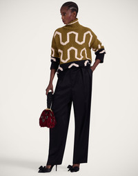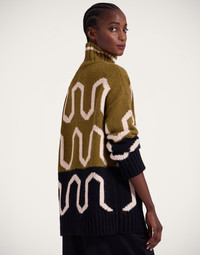 No ugly sweater parties here! This turtleneck arrives in the MOST sumptuous alpaca wool blend, in a two tone wave print that’s as eye-catching as it is easy to slip into your everyday wardrobe. The contrast ribbed neck and hem are the chic details that show off our Italian craftsmen’s work. We love it over the Perry Street Dress or with a Big Skirt for boho allure. Details & Fit - Alpaca blend - Turtleneck - Contrast hem and neck - Composition: 46% Acrylic 34% Alpaca Wool 14% Polyamide 6% Polyester - The model is 178 cm / 5′ 10″ tall and wears a size S
