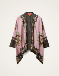 Is it a shirt? Is it a scarf? Actually, this beauty is a little bit of both. We’ve nattily transformed an Italian-made silk square scarf into a shirt design that looks great on all shapes and sizes thanks to its waterfall style fit. The fuss-free silhouette drapes off the arms with a cute Korean collar you can button up or let loose. So elegant in this hand-placed Nucleus print, great for work, even better for somewhere fabulous. Details & Fit - Silk twill - Mandarin collar - Buttons in front - Cuffs - Placed print - Garment length: 65cm - 100% Made in Italy - Composition: 100% Silk - The model is 180 cm / 5′ 11″ tall and wears a size S