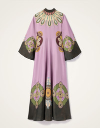 Shouldn't every babe have a dress called the Magnifico hanging in her closet? La DoubleJ believes so! With a stand-up collar, long sash at the back and draped waterfall sleeves, this special number will glide you around the room with an ease and an elegance reserved for the most exclusive of occasions. Cut in our Como-made silk twill with a subtle sheen, it is hand-placed in our Nucleus print which captures that oh-so-elusive spirit of Milanese refinement. Prego! Details & Fit - Silk twill - Hand-placed print - Stand-up collar - Back sash at neck - Maxi length - Waterfall sleeves - 100% Made in Italy - Composition: 100% Silk - The model is 180 cm / 5′ 11″ tall and wears a size S