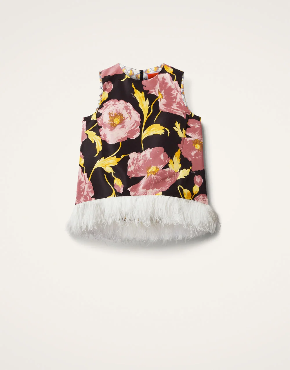 As far as interesting silhouettes go; this top may win the gold star. The asymmetrical hem, trapeze silhouette and contrast ostrich feathers give it an extra alluring form. In flirty Italian faille, it’s undoubtedly upscale but looks equally as great with some jeans and flats. Details & Fit - Faille - Unlined - Sleeveless top - Ostrich feathers along bottom hem - Composition: 100% polyester - The model is 180 cm / 5′ 11″ tall and wears a size S
