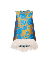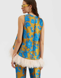 As far as interesting silhouettes go, the La Scala Top may win the gold star. Prime for opera invites, cocktail soirees, Milanese coffee runs and beyond, it arrives in our structured jacquard with an alluring asymmetrical hem and contrast marabou feather trim. Jeans and ballet pumps girls will find it slips in effortlessly with any denim rotation; maximalist mavens seek out the stunning Pencil Skirt to match. Details & Fit - Jacquard - Unlined - Sleeveless top - Ostrich feathers on bottom hem - Composition: 86% Polyester 5% Metal 4% Silk 3% Polyamide 2% Ostrich Feathers - The model is 179 cm tall and wears a size S - Garment length: 72cm