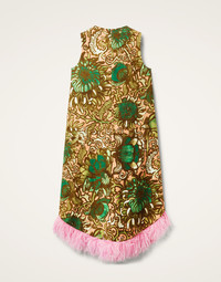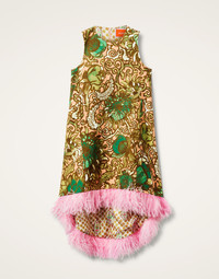 If you're a fan of our La Scala dress but prefer a higher neckline, then hello La Scala High Dress! It has all the drama-rama of its predecessor (see asymmetric feathered hemline, contrast lining and a generous A-line fit) but its high neck gives it extra levels of elegance when the dress code demands. Made in nubby shot cotton for an extra structured look, this baby is fun, fabulous and designed to delight. Blaze a trail, bella! Details & Fit - Shot cotton - High round neckline - Sleeveless - Concealed back zip - Marabou feather trim - Asymmetric hemline - Contrast lining - 100% Made in Italy - Composition: 98% Cotton 2% Polyester - The model is 180 cm tall and wears a size S - Garment length: 130cm