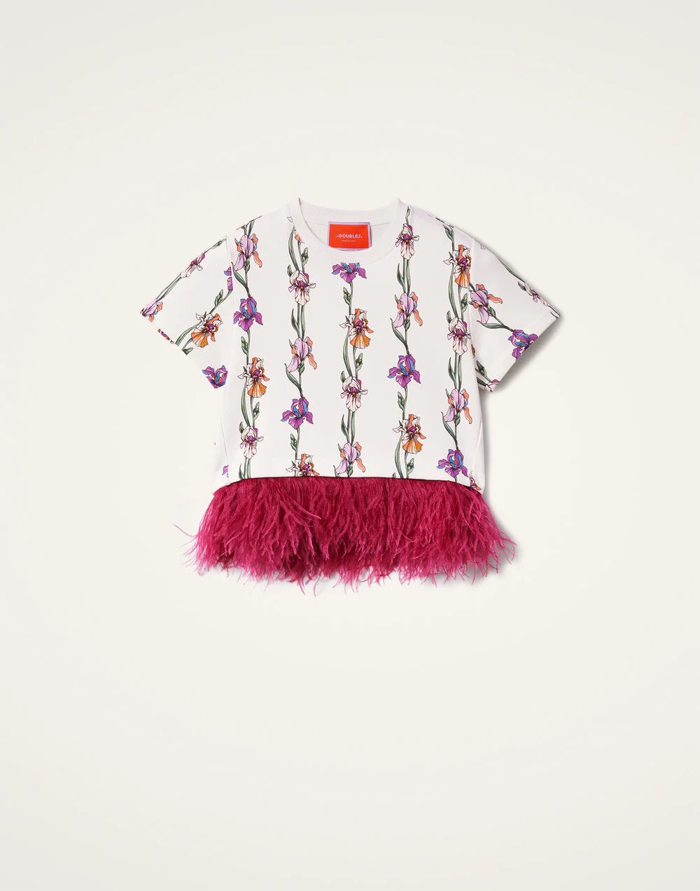How to add a little drama to the everyday? Allow our La Scala T-shirt to take to the stage. This beauty follows its predecessors with a fabulous contrast ostrich feather trim. We’ve balanced it out with a cool, cropped T-shirt silhouette in our substantial double jersey which means it's as great for a sassy high-low city look as it is for something more special. Structured not weighty, boyish and boxy, it’s super pretty with our A-Long Skirt or go full-on maximalist with the matching Saturday Night Pants. Details & Fit - Double jersey - Round neck - Cropped silhouette - Ostrich feather trim - 100% Made in Italy - Composition: 98% Cotton 2% Ostrich Feathers - The model is 180 cm / 5′ 11″ tall and wears a size S
