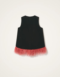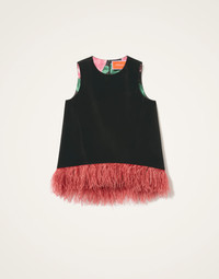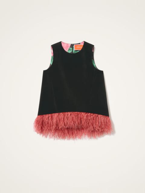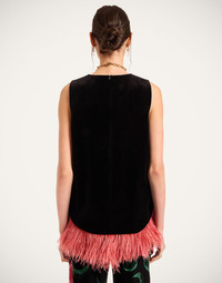 As far as interesting silhouettes go, the La Scala Top may win the gold star. Prime for opera invites, cocktail soirees, Milanese coffee runs and beyond, it arrives in our solid coat velvet with an alluring asymmetrical hem and contrast marabou feather trim. Jeans and ballet pumps girls will find it slips in effortlessly with any denim rotation; maximalist mavens seek out the stunning Pencil Skirt to match. Details & Fit - Coat velvet - Unlined - Sleeveless top - Ostrich feathers on bottom hem - Composition: 98%Cotton 2%Ostrich Feathers - Made in Italy - Garment length: 72cm - The model is 177 cm tall and wears a size S