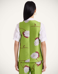 As far as interesting silhouettes go, this top may win the gold star. The asymmetrical hem and trapeze silhouette create an undeniably alluring form, and it comes crafted in occasion-ready jacquard, meaning it's undoubtedly upscale (but looks equally as great with some jeans and flats.) Details & Fit - Jacquard - Unlined - Sleeveless top - Composition: 83% Polyester 9% Cotton 5% Silk 3% Polyamide - The model is 177 cm / 5′ 9.7″ tall and wears a size S
