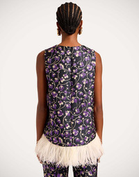 As far as interesting silhouettes go, the La Scala Top may win the gold star. Prime for opera invites, cocktail soirees, Milanese coffee runs and beyond, it arrives in our structured jacquard with an alluring asymmetrical hem and contrast marabou feather trim. Jeans and ballet pumps girls will find it slips in effortlessly with any denim rotation; maximalist mavens seek out the stunning Pencil Skirt to match. Details & Fit - Jacquard - Unlined - Sleeveless top - Ostrich feathers on bottom hem - Composition: 88% Polyester 7% Silk 5% Polyamide - Made in Italy - Garment length: 72cm - The model is 180 cm / 5′ 11″ tall and wears a size S