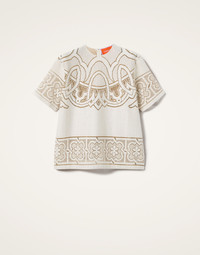 Who needs a plain white tee when you could have a trophy T-shirt? Our House silhouette is exactly that, crafted in our new weightless white cotton lace to bring a molto elegante spin to your summer work wardrobe or Saturday night ensemble. With a boyfriend shape that’ll elevate with an insouciant spirit, we’ve left it unlined to highlight every stitch of that exquisite embroidery. Throw over a swimsuit for your schlep to the Mezzatorre pool or style up with the matching Oscar skirt for a dreamy look that’ll take you from vineyard weddings to garden parties, beach soirees, and beyond. Details & Fit - Embroidered cotton lace - Oversized T-shirt shape - Round neckline - Short sleeves - Zip in back - 100% Made in Italy - Composition: 80% Cotton 20% Polyester - The model is 178 cm tall and wears a size S - Garment length: 66cm