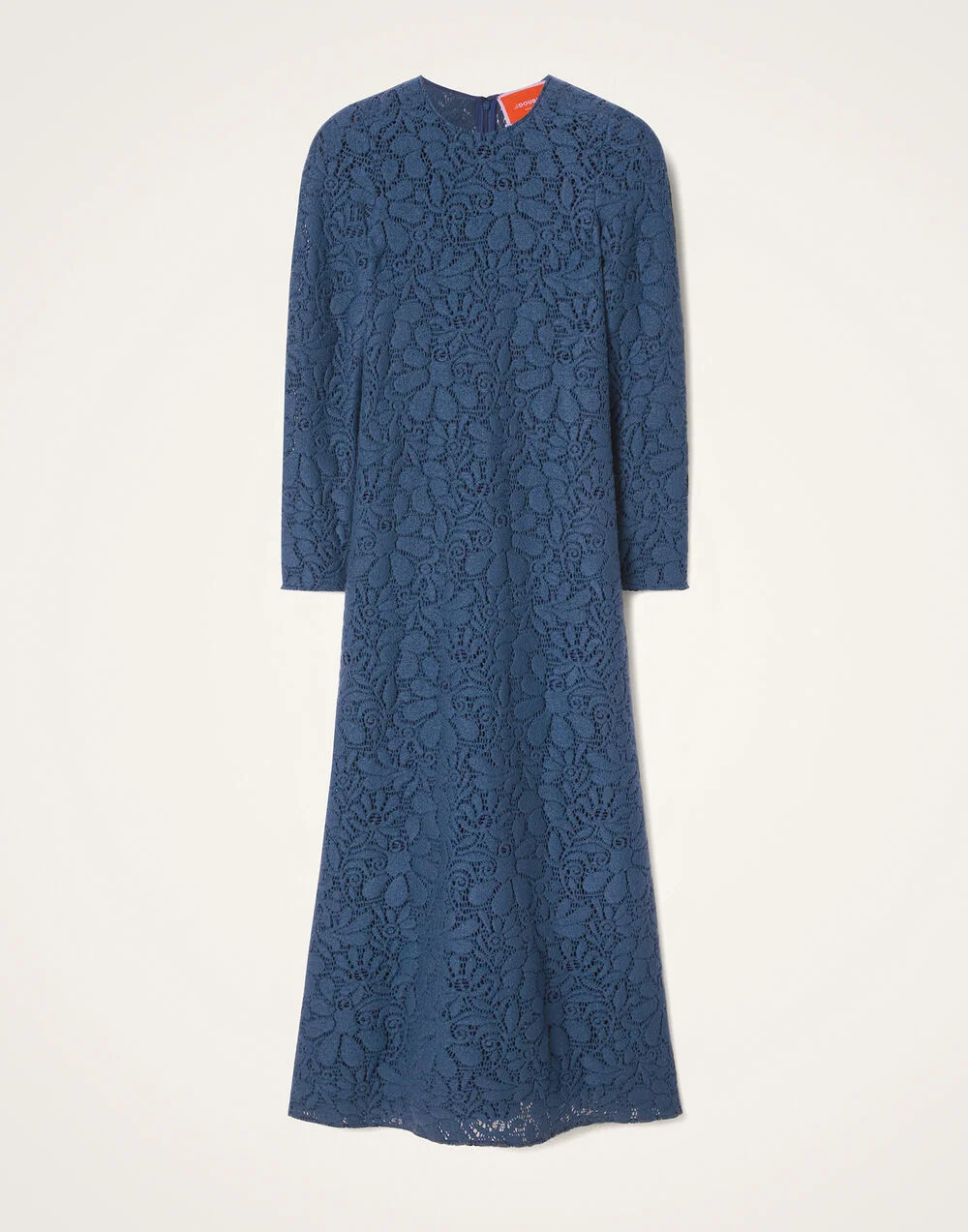 It's the Swing Dress you know and love, but with long sleeves, babe! This design twist on our very first La DoubleJ dress provides a very practical update for our best-seller, a bonafide wardrobe mood-booster destined for party season. With a generous cut through the hips that falls to an ankle-swinging skirt, this beauty arrives in our innovative wool lace for a winning winter look that is as cosy as it is chic. In effortless navy = hello, new favorite. Details & Fit - Wool lace - Slim in the shoulders, generous in the hips - Long sleeves - Falls into an A-line - Hits just above the ankles - 100% Made in Italy - Composition: 90% Wool 10% Polyamide - Garment length 135cm - The model is 180 cm / 5′ 11″ tall and wears a size S