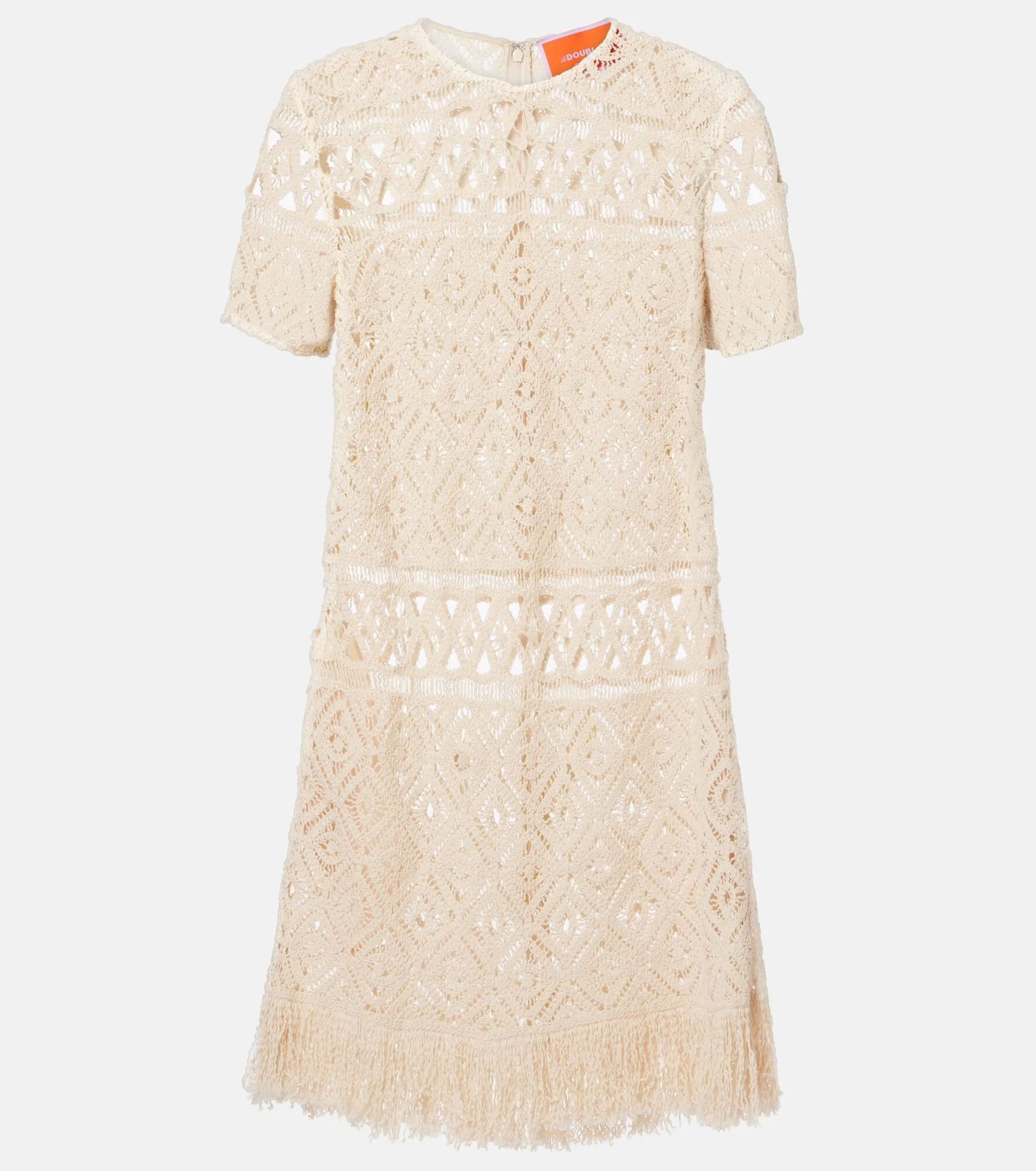 La DoubleJ works with top Milanese textile manufacturers to bring archival patterns to life on its signature eclectic styles. The Lacey minidress is expertly, intricately crafted from macrame cotton with fringed trims. Product Details - Material: 100% cotton - Care instructions: hand wash - Made in Italy - Designer color name: Plaza Macrame - Item color: beige - Pockets: side slit pockets - Closure: invisible zipper - Item number: P01028711 Size & Fit - True to size - Semi-sheer - Straight fit - Non-stretchy fabric - The model seen in the picture is 178cm-5'10" and wearing a size XS