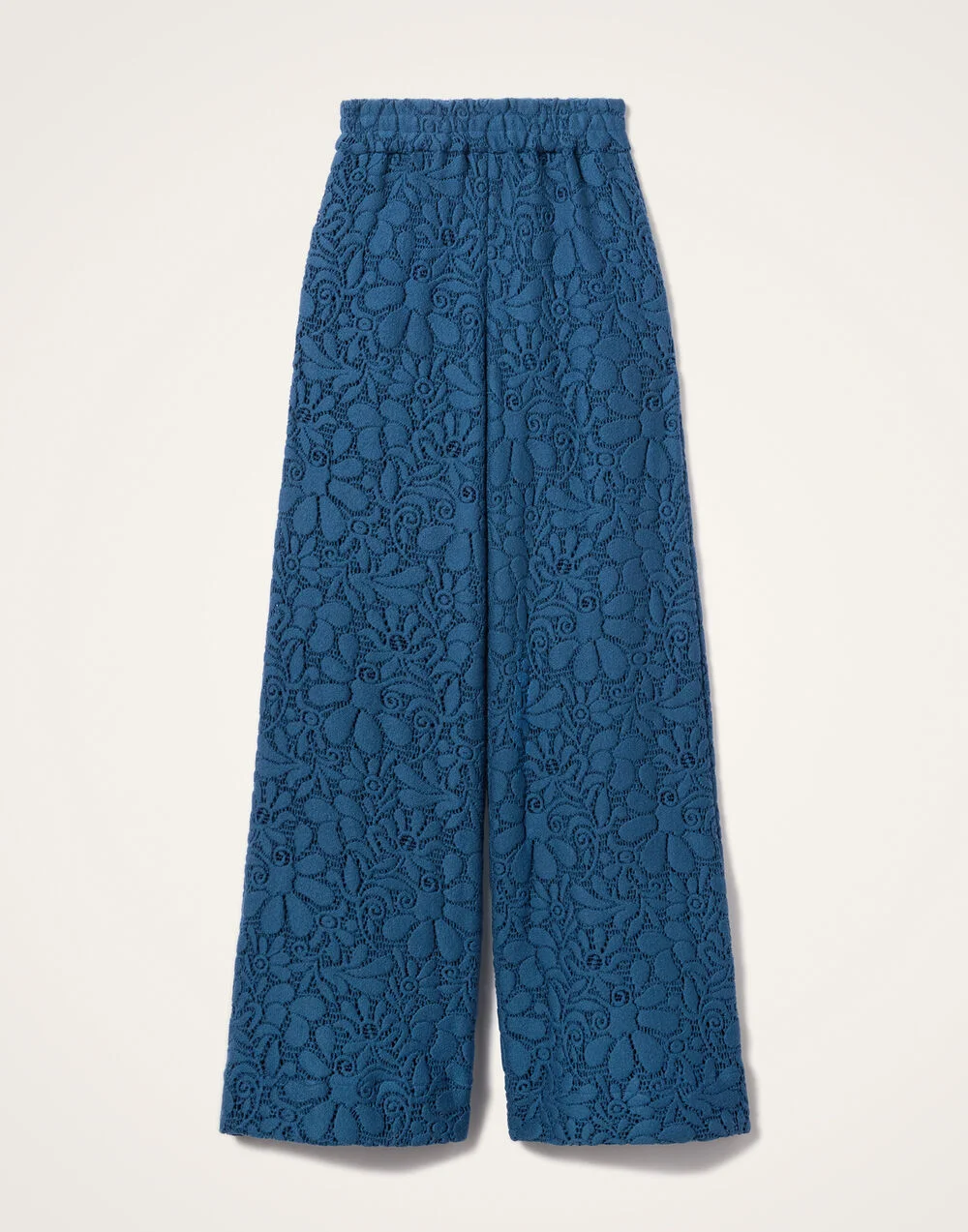 We cannot take credit for inventing the Palazzo Pant silhouette, but we will take credit for making them cool again. These trousers sit on the waist and fall flared, with a wide fit through the legs – like a skirt, but with the comfort of pants. A bellissima wardrobe addition in this chic, Italian wool lace. Details & Fit - Wool - Elastic waist - Concealed side pockets - Roomy fit - 100% Made in Italy - Composition: 90% Wool 10% Polyamide - The model is 180 cm / 5′ 11″ tall and wears a size S