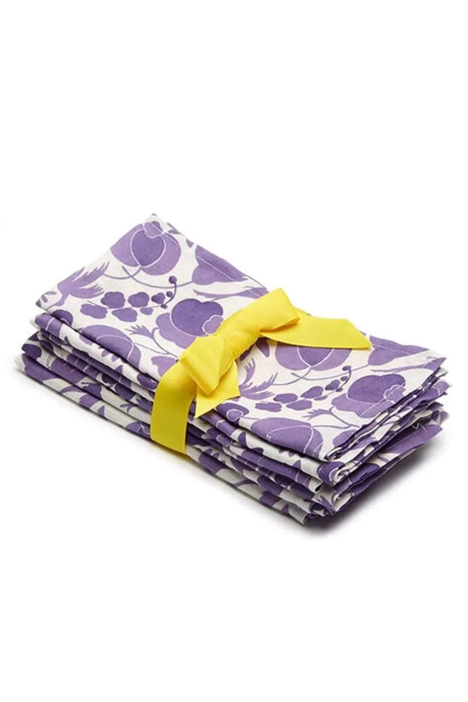 DETAILS AND INSIGHT Our 100% linen vintage patterned dinner napkins are as crisp as can be and come in sets of six. Although they are the perfect perky addition to a classic white tablecloth, we invite you to go crazy and mix your printed napkins with our patterned placemats and tablecloths for a fully maximalist La DoubleJ Housewives effect! Treat these babies with care: our bellissimo Italian-made linen has natural irregularities, such as small knots in the yarn, but for us that doubles the charm. Linen cotton from Lake Como Machine wash warm (do not bleach) 45cm x 45cm Made in Italy Style NAP0002-LIN001_HW4-VIOLA