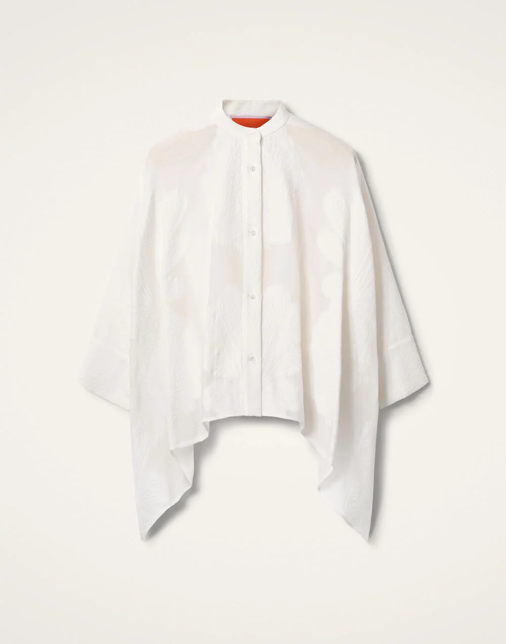 New for the sunshine season in our luscious LDJ take on lace, the Foulard Shirt is a J.J. staple thanks to its chic waterfall style that drapes off the arms and flatters all shapes and sizes. Molto elegante for garden parties, intimate al fresco lunches or sand-to-soiree situations paired with the matching Good Butt Shorts. In our intricate Pineapple motif, the forecast looks sunny, babe! Details & Fit - Jacquard lace - Korean collar - Buttons through front - Waterfall style fit - Cuffs - 100% Made in Italy - Composition: 67% Cotton 33% Silk - The model is 178 cm tall and wears a size S - Garment length: 65cm