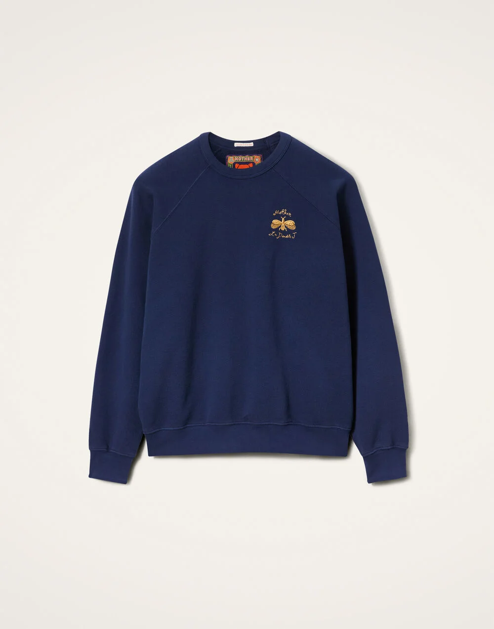 Our new sweatshirt obsession has just arrived courtesy of the Ciao Mamma! collaboration between La DoubleJ and MOTHER. A little bit oversized, a lot alluring, this closet staple features a crewneck, ribbed hems and a slightly cropped fit for a more retro, John Hughes silhouette. Made from 100% cotton in deep blue, we've boosted this beauty with an embroidered yellow dragonfly, one of La DoubleJ's first spirit animals symbolizing transformation, courage and joy. Details & Fit - LDJ x MOTHER collection - Slightly cropped oversized raglan sweatshirt - Composition: 100% cotton - The model is 177 cm / 5′ 9.7″ tall and wears a size S