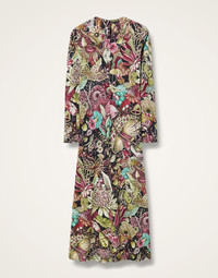It's the Swing Dress you know and love, but with long sleeves, babe! This design twist on our very first La DoubleJ dress provides a very practical update for our best-seller that’ll take you from a desk job to cocktails and beyond. With pockets and a generous shape through the hips that falls to an ankle-swinging skirt, it’s cut from flowy Italian jersey for extra luxurious fluidity and form. Magic day or night in this enchanting Fun-Gi print. Details & Fit - Flowy jersey - Slim in the shoulders, generous in the hips - Long sleeves - Falls into an A-line - Hits just above the ankles - Hidden side slit pockets - 100% Made in Italy - Composition: 92% Viscose, 8% Elastane - Garment length 135cm - The model is 180 cm / 5′ 11″ tall and wears a size S