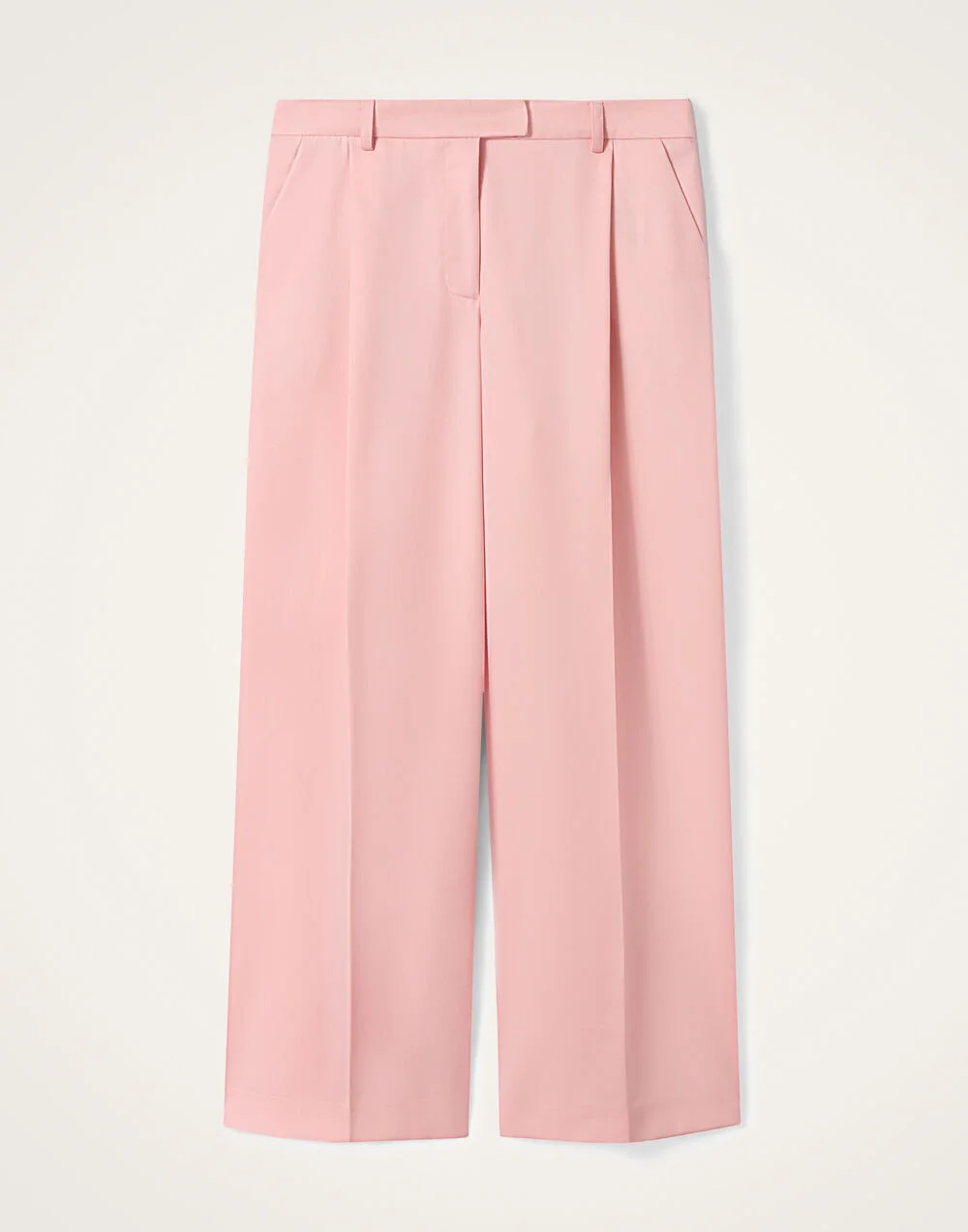 For when you need to head straight from the boardroom to the birthday bash, these pants. Are. IT. Equal parts laid-back and luxurious, the aptly named Loose Pant has a tailored, masculine feel, with pleats down the front, a low waist and a whimsical wide leg. With belt loops and pockets in the front and back, this pair arrives in our luxurious pink wool satin and play oh-so-prettily with our silk shirts for a special occasion look. Details & Fit - Garment fit: oversized - Wool satin - Belt loops - Pockets in front and back - Pleated front - Low waist - 100% Virgin wool - Unlined - Made in Italy - Garment length: 106cm