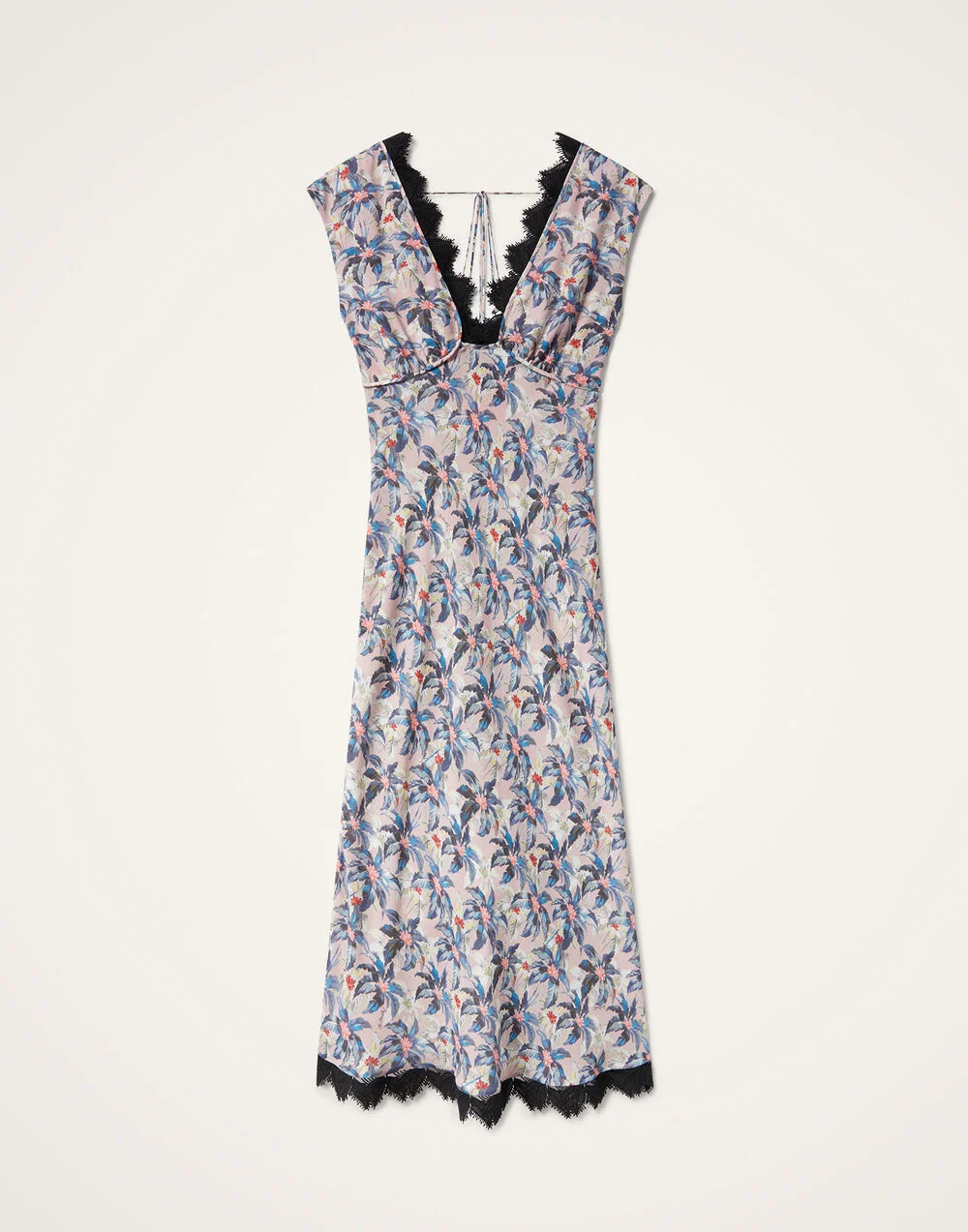 We took the boudoir to the boardwalk with this one, crafting its figure-skimming silhouette in Italian crepe marocain with contrast lace trim. With a name meaning "of the night" she's date night ready, arriving with a sensual deep V in the front and back and is cut on the bias to accentuate your every curve. Subtle details like the light pleating under the low bust mean she’s perfect for those with more up top, while a cap sleeve keeps this come-hither style super sophisticated. Details & Fit - Crepe Marocain - Deep v in front and back - Lace trim - No Pockets - Cut on the bias - Made in Italy - Composition: 100% viscose - The model is 178 cm / 5′ 10″ tall and wears a size S