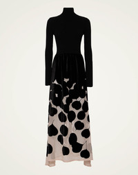 We're calling it - the Lunaria just might be the dress of the season. With a figure-skimming turtleneck style top that flows out into a sheer ivory skirt studded with opaque black petals, she's the perfect blend of laid-back and luxurious, romantic and dramatic, sensual and sophisticated. It's the autumn-to-spring dress that dreams are made of and we all want one! Details & Fit - Silk-knit - High-low hem - Long sleeve - Adjustable ties down front - Made in Italy - Composition: 82% viscose, 18% silk