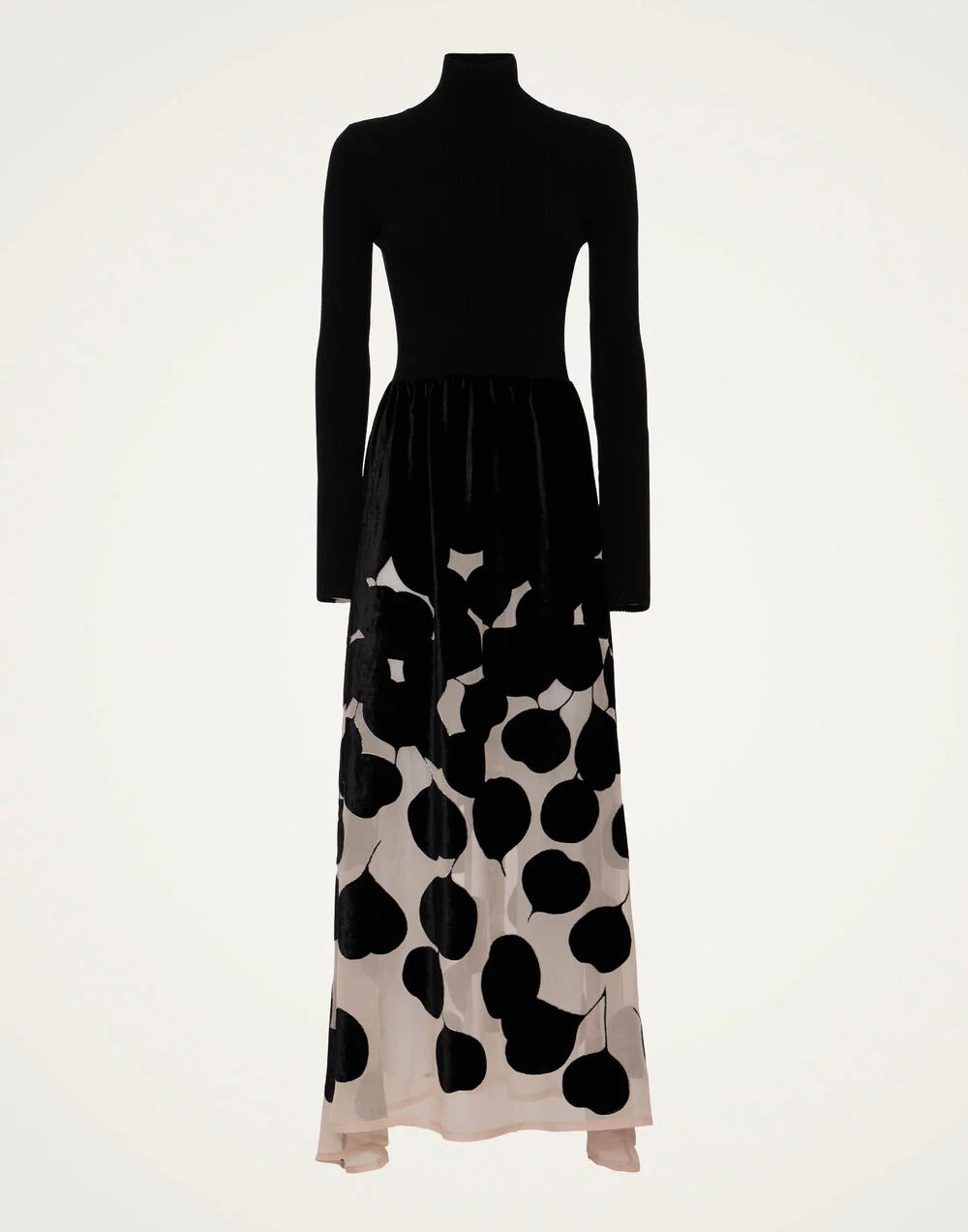 We're calling it - the Lunaria just might be the dress of the season. With a figure-skimming turtleneck style top that flows out into a sheer ivory skirt studded with opaque black petals, she's the perfect blend of laid-back and luxurious, romantic and dramatic, sensual and sophisticated. It's the autumn-to-spring dress that dreams are made of and we all want one! Details & Fit - Turtleneck style top - Long sleeve - Sheer skirt with opaque petals - No pockets - Made in Italy - Composition: 82% viscose, 18% silk - The model is 178 cm / 5′ 10″ tall and wears a size S