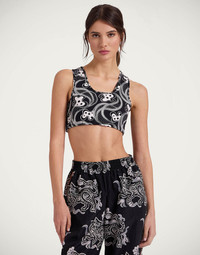 We don’t usually go gaga for undergarments, but mamma mia is this bra truly Magica. Part of our Le Divine capsule, this bust-boosting beauty has a shoulder celebrating racer back and comes in shape celebrating technical jersey for extra support. You could wear this under your sisterhood tee for your yoga session, but with style this stellar, we love it alone with high-waisted leggings and jeans. Details & Fit - Le Divine capsule - Technical jersey bra - Elastic band at base - Racer back - Round neckline - 100% Made in Italy - Composition: 79% Polyester 21% Elastane - The model is 180 cm / 5′ 11″ tall and wears a size S